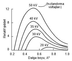 Şekil-1: Tungsten hedefli bir X-ışını tüpünden alınan sürekli ışının dağılımı
